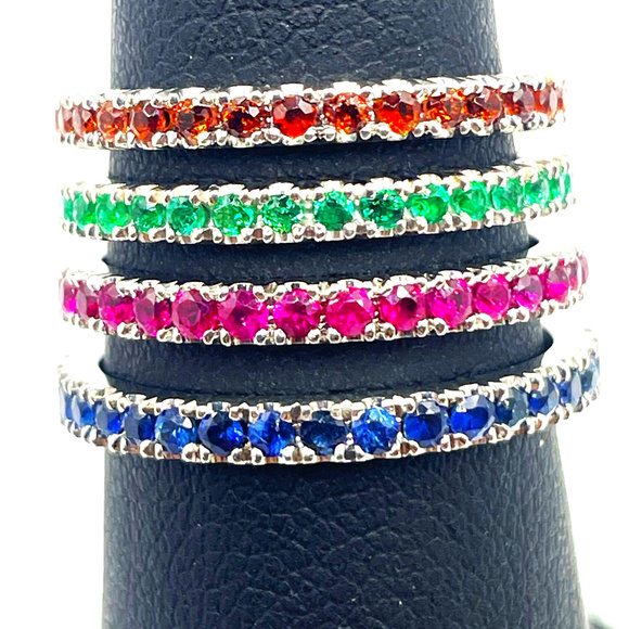 Whether you choose the classic allure of sparkling diamonds or the vibrant charm of colored gems, each Eternity Band is a masterpiece of precision and beauty. Crafted with the finest materials, our Eternity Bands are not just jewelry; they are an eternal promise, a perpetual reminder of the unending bond you share. Perfect for anniversaries, special milestones, or a heartfelt expression of love, these rings are more than adornments—they're a celebration of enduring commitment and personal stories.